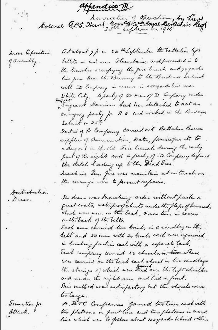 extract for 25 September 1915 taken from the 2nd Battalion Royal Berkshire