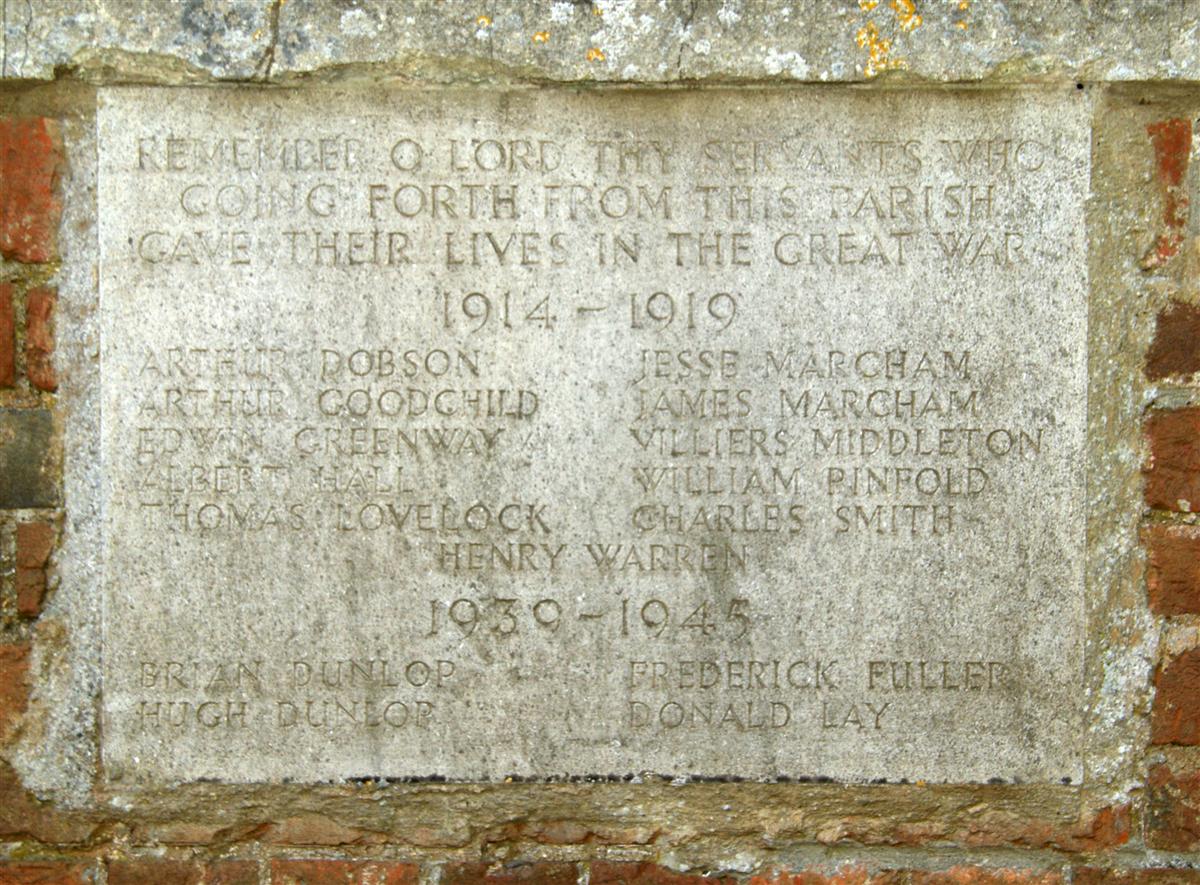 Remember O Lord Thy servants who / going forth from this Parish / gave their lives in the Great War