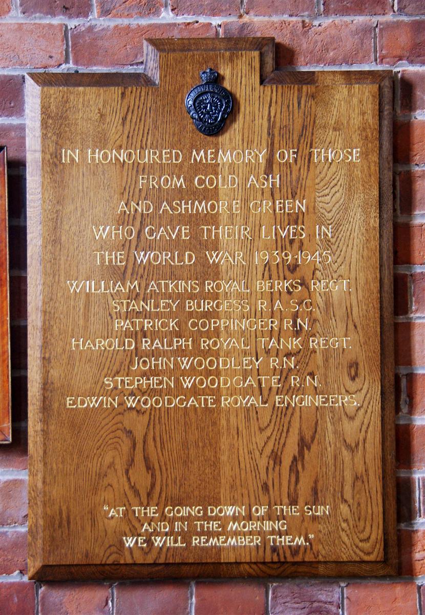 In honoured memory of those / from Cold Ash / and Ashmore Green / who gave their lives in / the World War 1939-1945