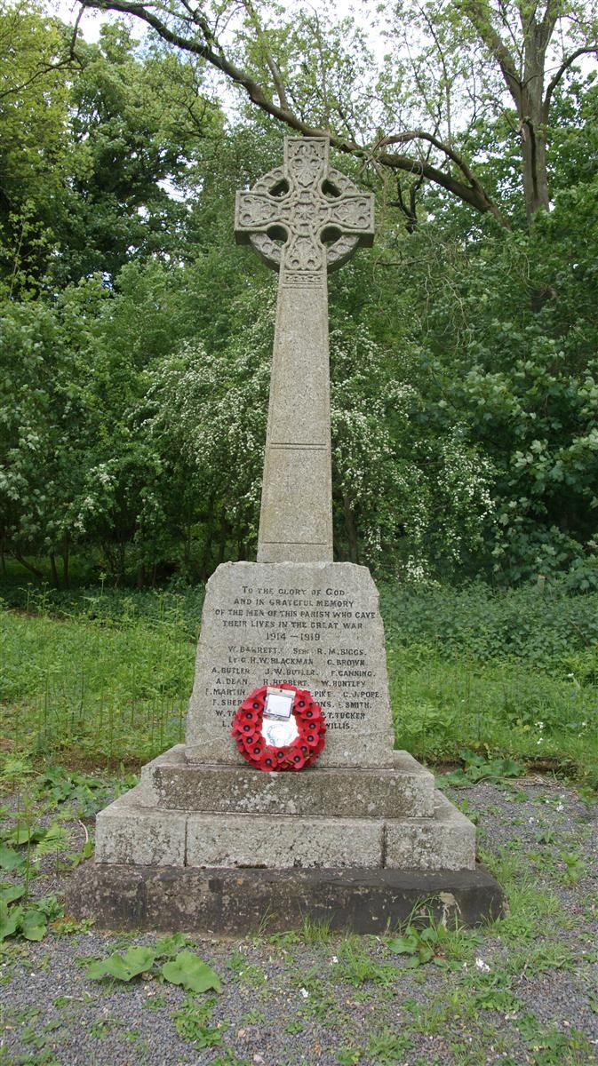 A Celtic Cross of Cornish granite stands on the roadside halfway between Welford and Wickham, as a memorial to the men of the parish who made the supreme sacrifice on behalf og their King, Country and Fellow Men in the great struggle for freedon during 1914-1918. Nowehere in the district is there a more characteristic bit of English scenery; the rural road running through the park-like pasture, fringed with May bushes, and further down the typical Ann Hathaway cottage. Nothing more powerful can be imagined or desired; but the rugged Celtic Cross will evermore carry the mind of the wayfarer to the brave deeds done on the stricken fields of France and Belgium by simple men who left their houses and their loved ones, giving their lives that England might remain free.