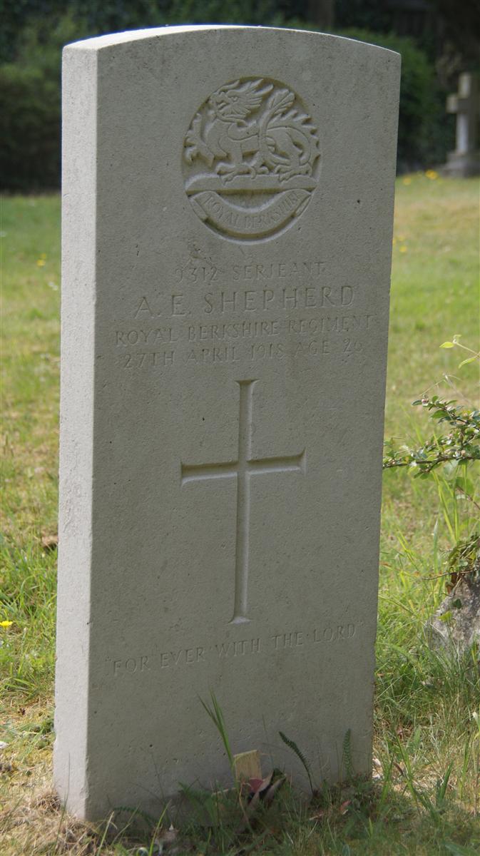 9312 Sergeant / A W Shepherd / Royal Berkshire Regiment / 27th April 1918 Age 26 / For ever with the Lord