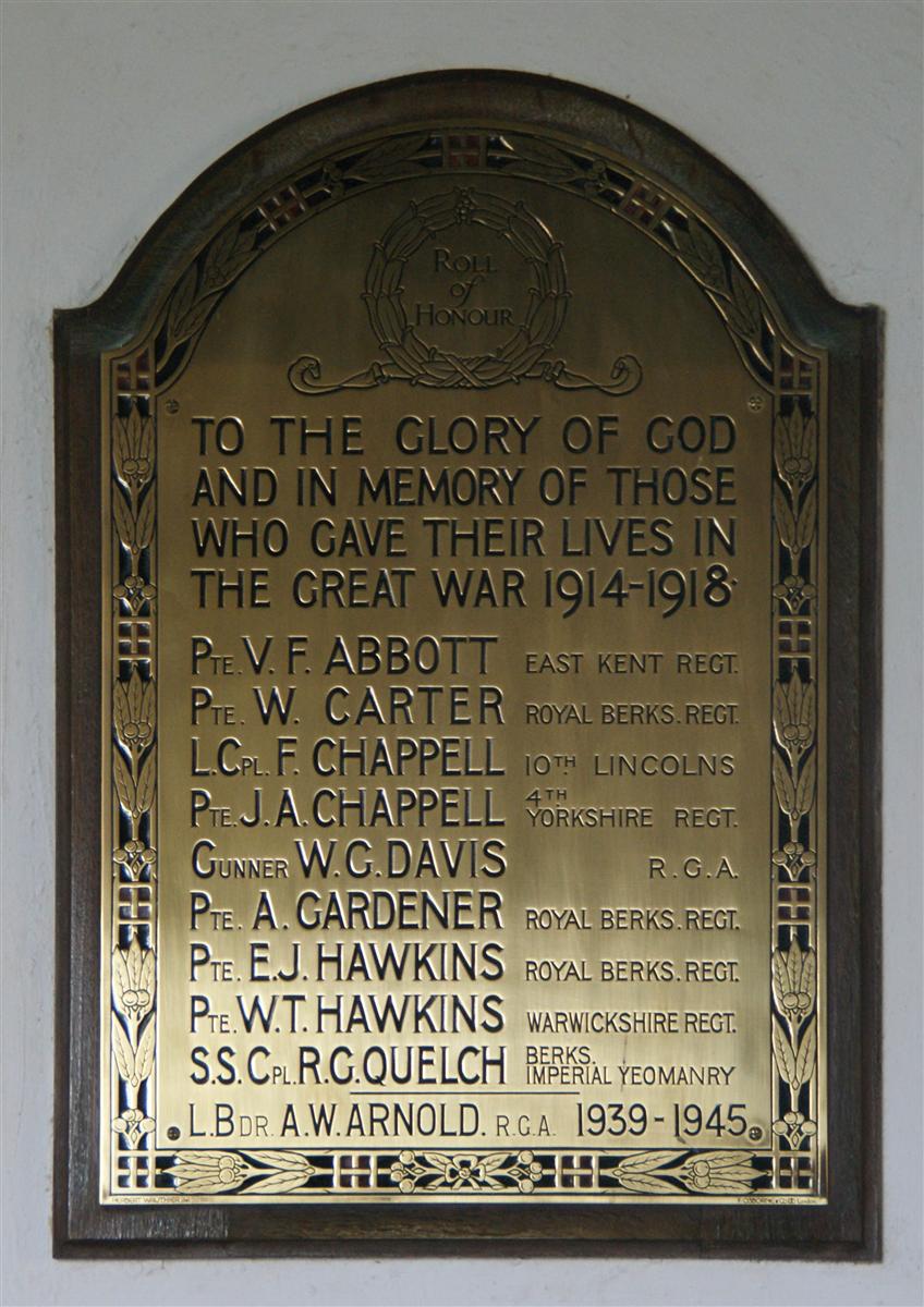 To the Glory of God / and in memory of those / who gave their lives in / the Great War 1914-1918