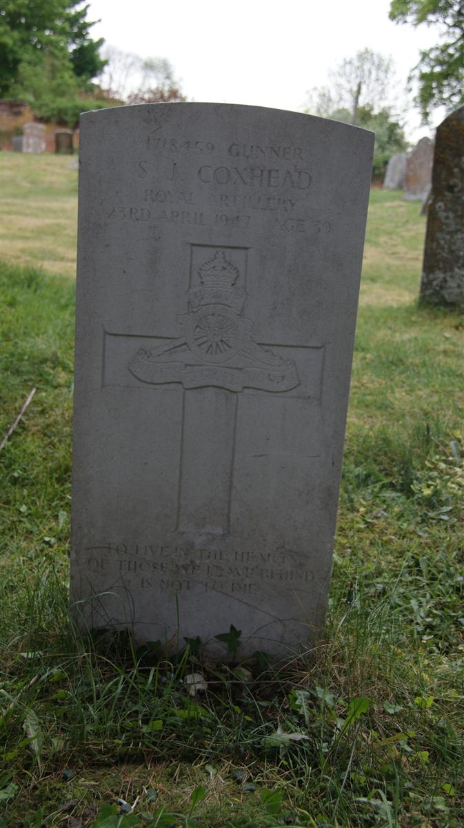 1718459 Gunner / S J Coxhead / Royal Artillery / 23rd April 1947 Age 39 / To live in the hearts / of those we leave behind / is not to die