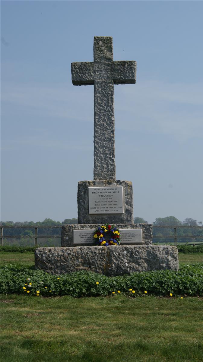 To the dear memory of / Philip Musgrave Neeld / Wroughton / of Woolley Park / Major Berks Yeomanry / Born August 30th 1887 / Killed in action at Gaza Palestine / April 19th 1917, Aged 29