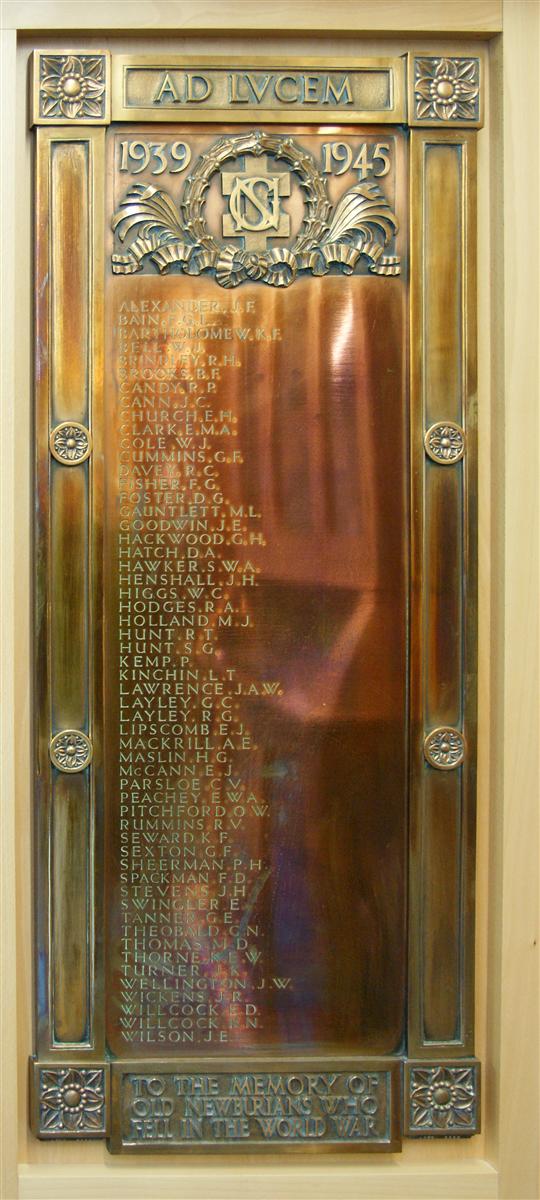 [Note: Formerly located in the Wormestall building of the old Newbury Grammar School this memorial was moved to its current location in the school reception area when the new school was built in 2010.]