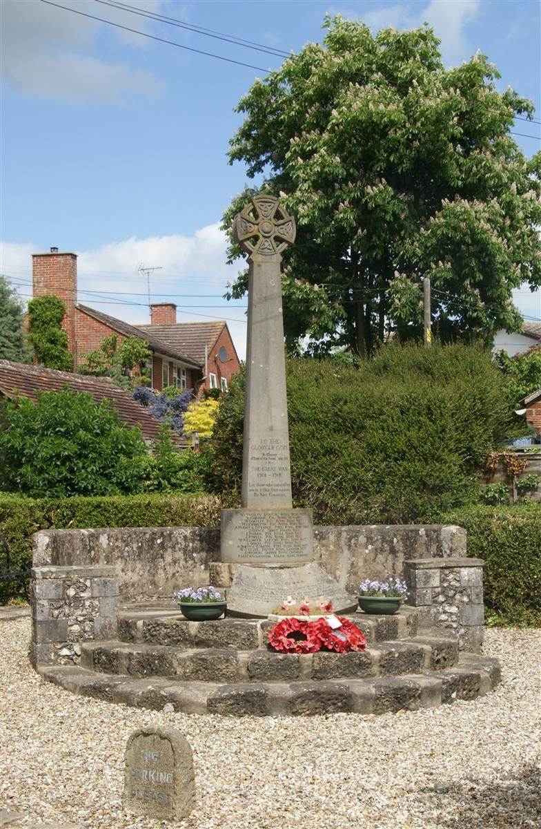 Brigadier-General J Wigan, MP for North Berks, paid a fitting tribute to the men of the Berkshire Regiment and of the Berks Yeomanry, last (Wednesday) evening at Chaddleworth. The occasion was the unveiling of a memorial to those who went forth from Chaddleworth and laid down their lives during the Great War. Chaddleworth did its duty manfully in the time of the country’s need. It is a typical old-world Berkshire village, bordering on the Downs, and from its small population no less than 68 men went out. The memorial is simple, but striking. It is a Runic Cross standing at the entrance to the village, at the junction of the Newbury and the Leckhampstead-roads, with a background of typical old thatched cottages and a yew hedge. The cross shaft and base are executed in Forest of Dean stone, with a base of staddle stone, which is in keeping with the local characteristics. The inscription on the shaft was:-