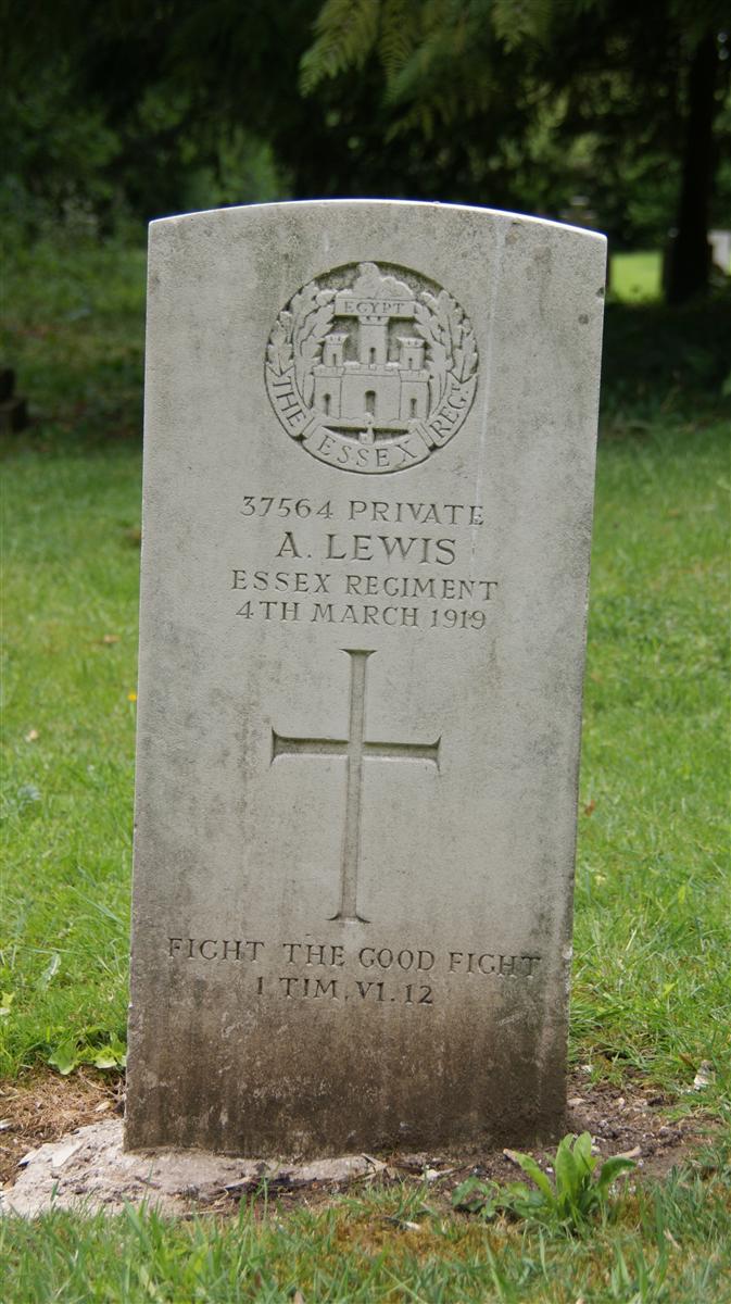 37564 Private / A Lewis / Essex Regiment /4th March 1919 // Fight the good fight / 1 Tim VI.12