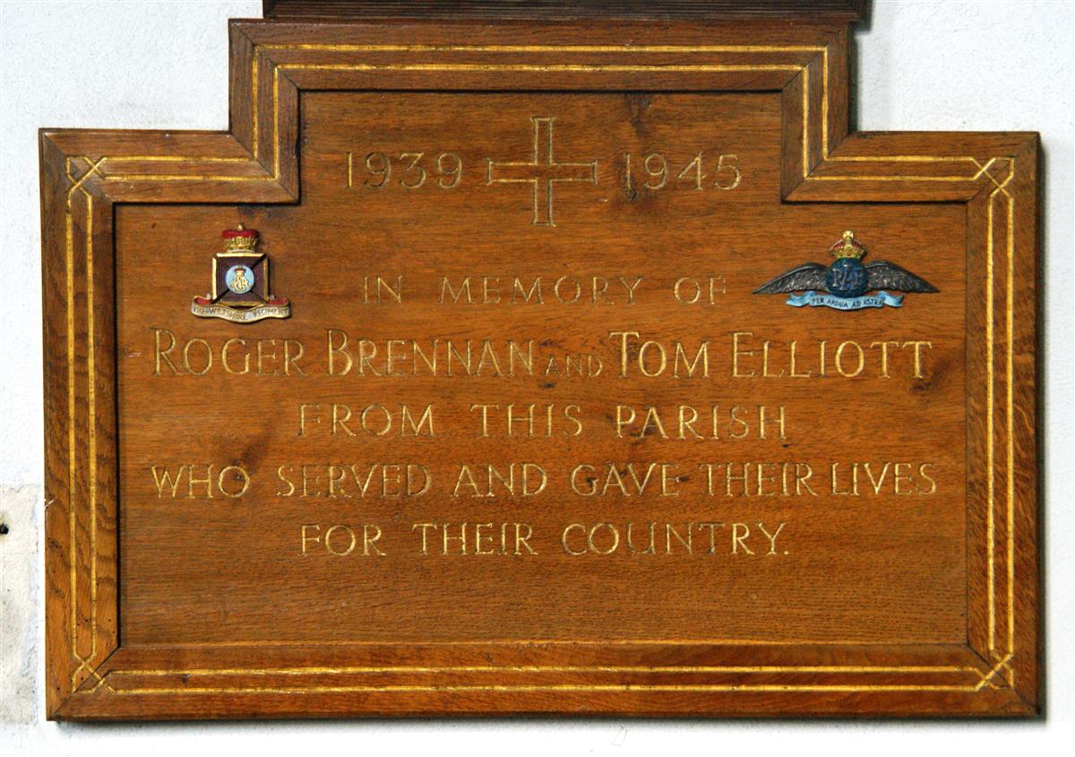 1939 - 1945/ In memory of / Roger Brennan and Tom Elliott / from this/ parish who served and gave their lives for their country
