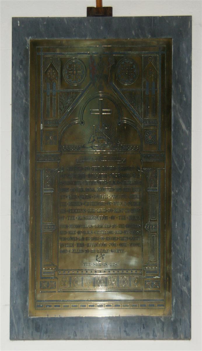 Sacred to the memory / of Arthur William Pearson RN / Assistant Paymaster HMS Cameleon / Born 15 Feb 1848 Drowned 25 May 1872 / at San Blas North Pacific near / the ruined cathedral of which place / his remains are laid to rest in hope / of the resurrection of the dead. / This memorial is erected by the officers / and men of HMS Cameleon and by those / who loved him at home to record their great / esteem and affection for one whom / God called to an early grave.