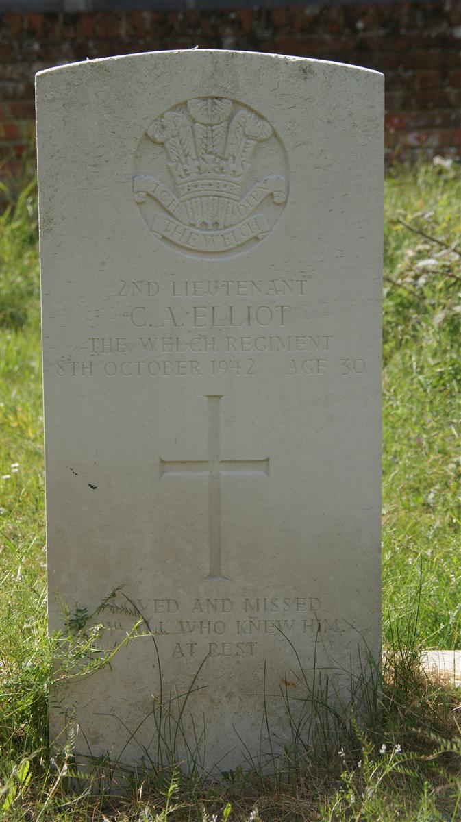 2nd Lieutenant / C A Elliot / The Welch Regiment / 8th October 1942 Age 30 // Loved and missed / by all who knew him / At rest