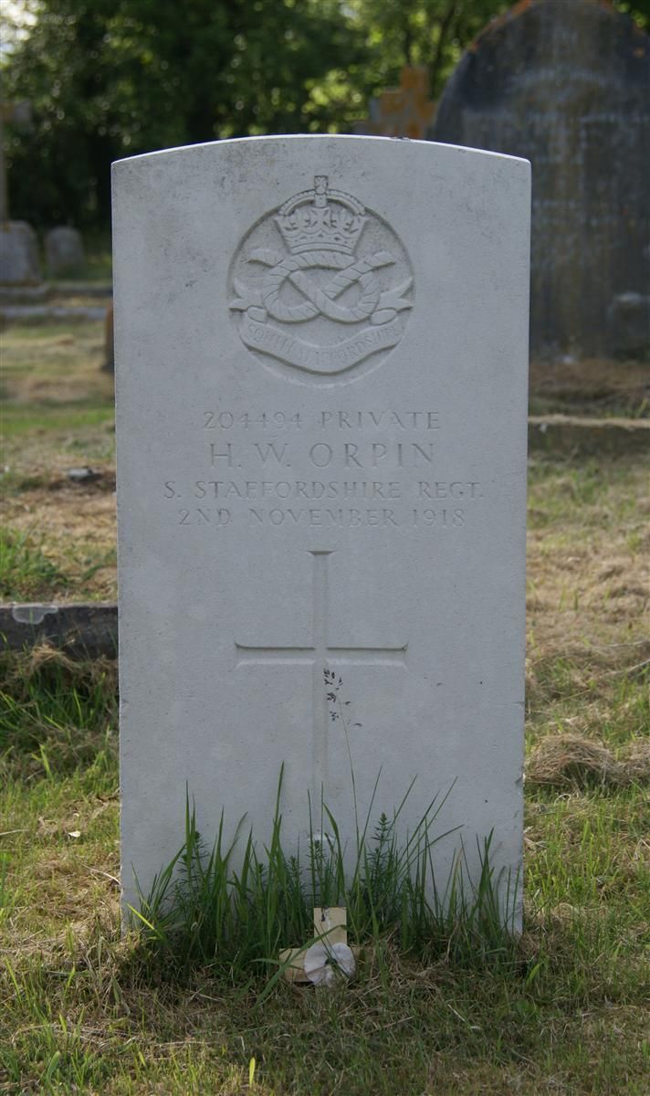 204494 Private / H W Orpin / S Staffordshire Regiment / 2nd November 1918