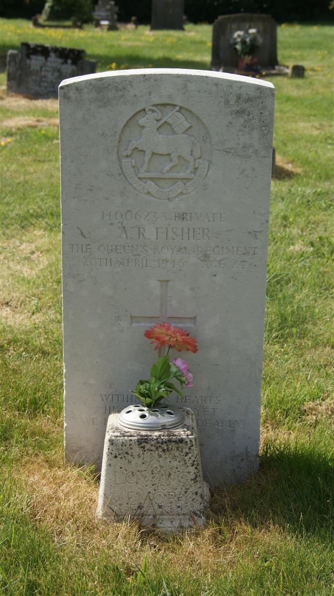 14006233 Private / A R Fisher / The Queen’s Royal Regiment / 20th April 1946 Age 24// Within our hearts / he is with us yet / we love him too dearly / to forget