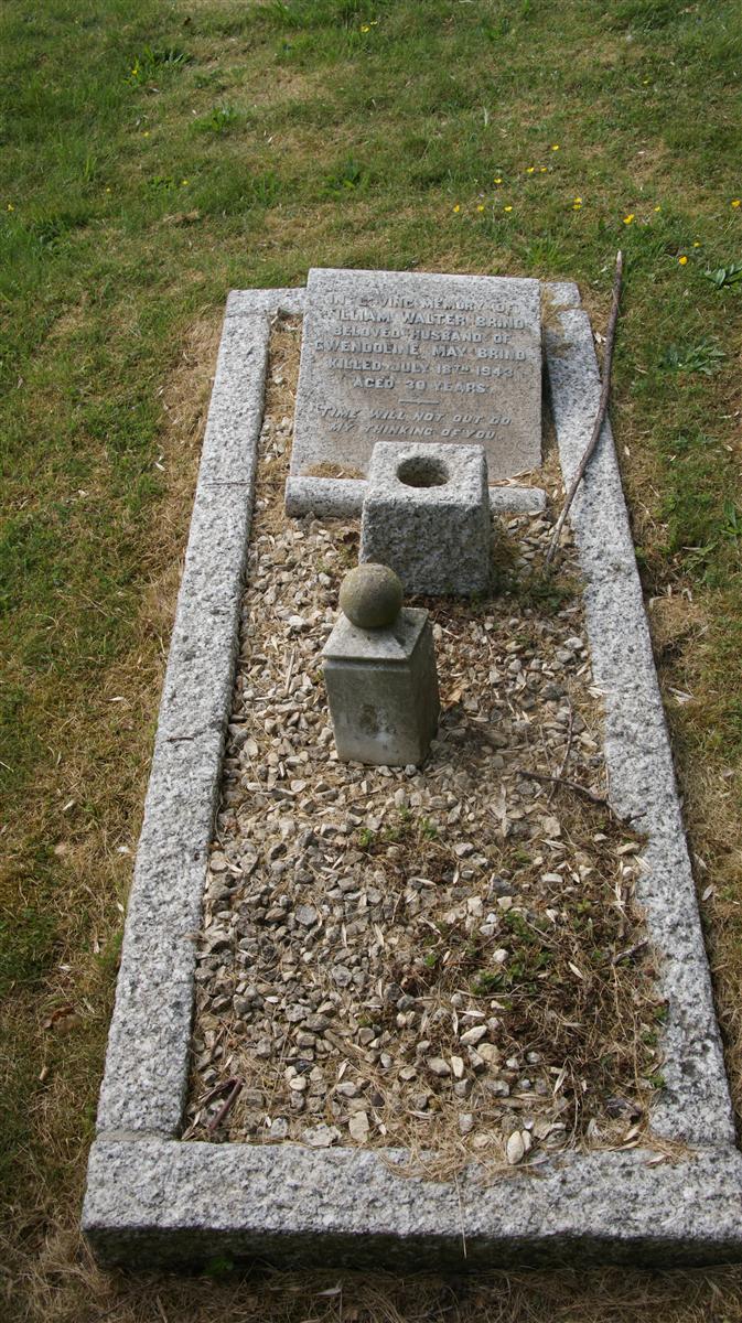 In loving memory of / William Walter Brind / beloved husband of / Gwendoline May Brind / killed July 18th 1943 / Aged 30 years // Time will not out go / my thinking of you.