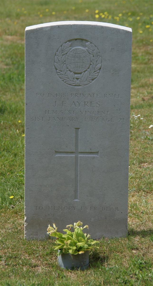 PO/18488 Private RMLI / J F Ayres / HMS Vincent / 31st January 1919 Age 21