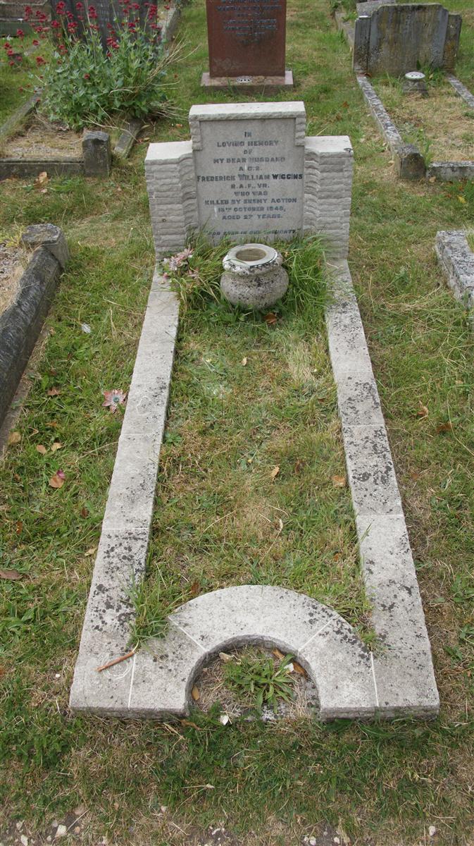 In / loving memory / of my dear husband / AC2 / Frederick William Wiggins . RAF VR / who was / killed by enemy action / 13th October 1940 / Aged 27 years / “For ever in our thoughts”