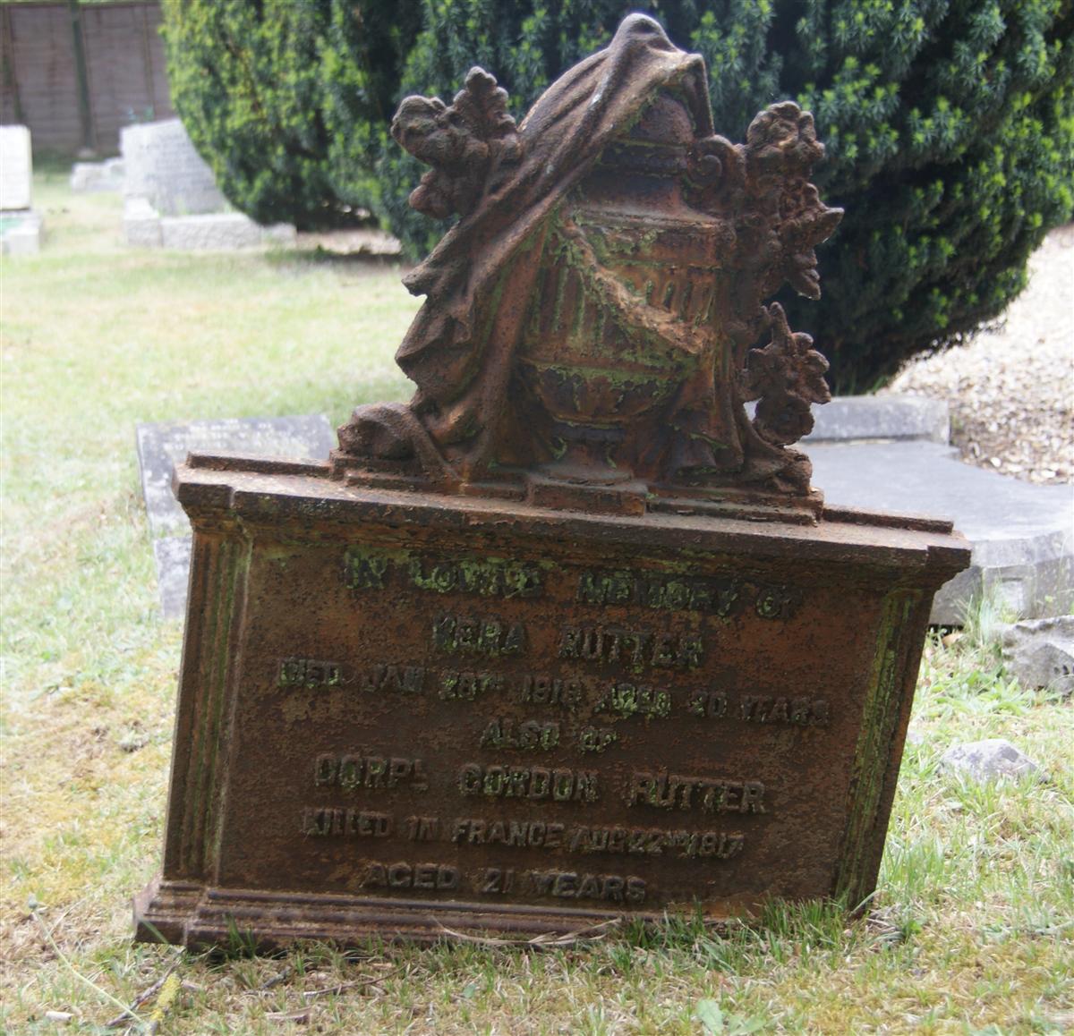 In loving memory of / Vera Rutter / Died Jan 18th 1918 Aged 20 years / Also of / Corpl Gordon Rutter / killed in France Aug 22nd 1917 / Aged 21 years