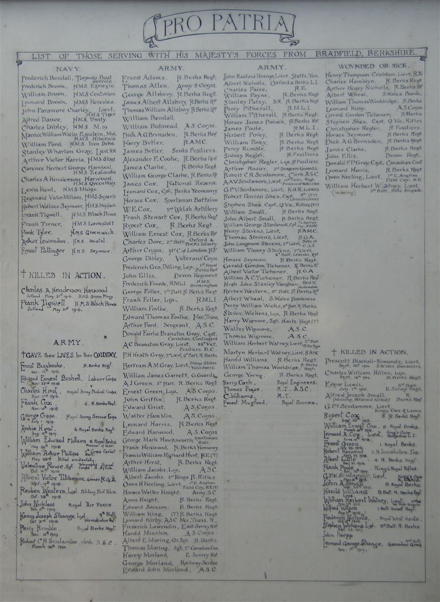 List of those serving with his Majesty’s forces from Bradfield, Berkshire.