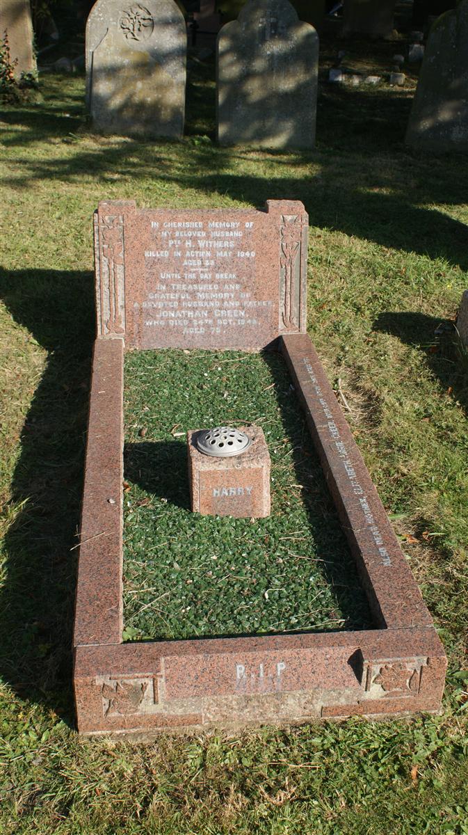 In cherished memory of / mu beloved husband / Pte H Withers / killed in action May 1940 / Aged 33