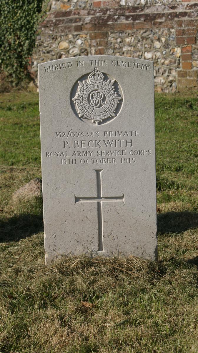 Buried in this cemetery / M2/076383 Private / P Beckwith / Royal Army Servce Corps / 15th October 1915