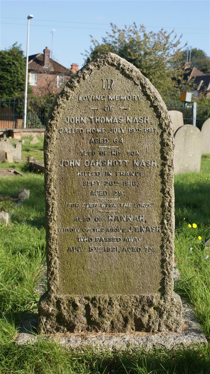 Also of his son / John Oakshott Nash / Killed in France / Sept 26th 1916 / Aged 29