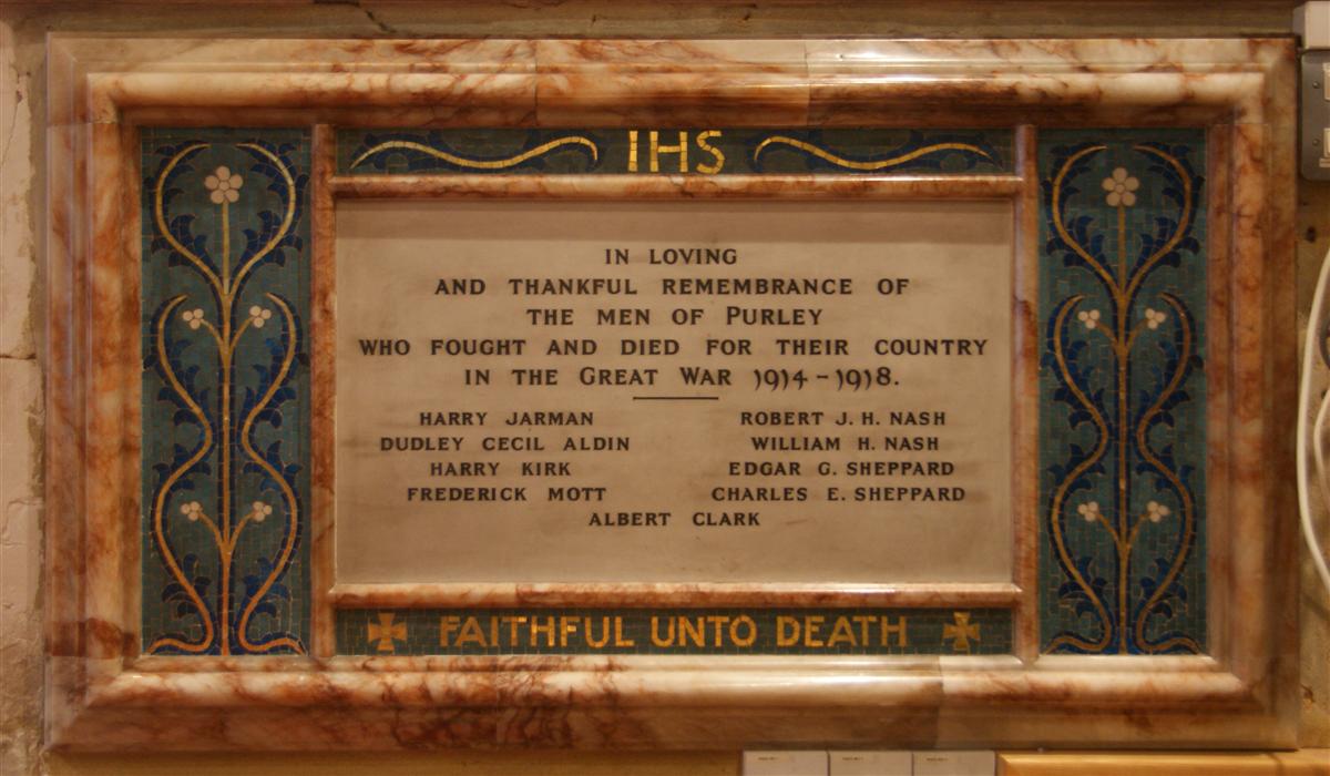 In loving / and thankful remembrance of / the men of Purley / who fought and died for their country / in the Great War 1914-1918.