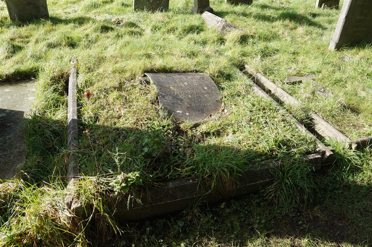 In memory of / Alfred Stradling / died Jun 12th 1891 / in his 65th year. / Also of Ann Bedford Stradling his wife, died Nov 20th 1900 / in her 76th year. / "Until the day break." / Keith Stradling Hopson / born Aug 20th 1890, died June 9th 1909. / Joseph Alfred Hopson, born Aug 7th 1888, missing at Gallipoli Aug 27th 1915. 2nd Welln Mtd Rifles, NZ.