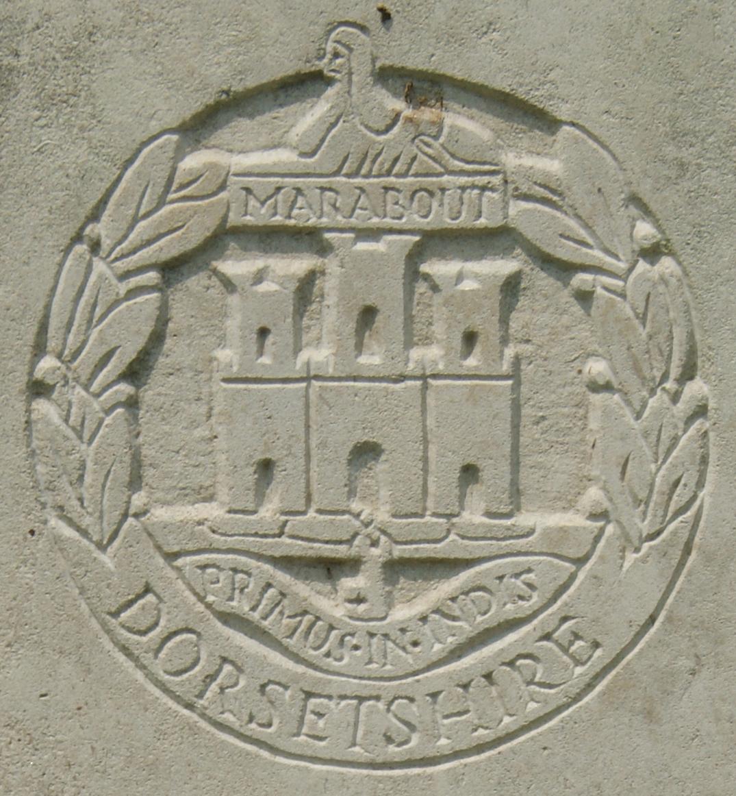 ![]() The regimental badge of the Dorsetshire Regiment, as used on CWGC headstones. |