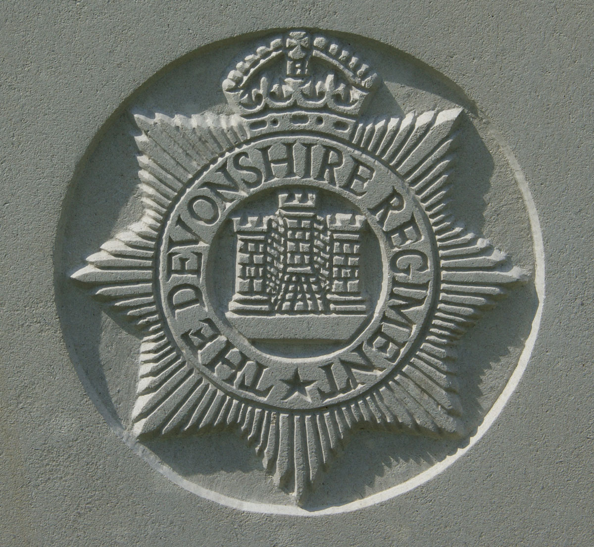 ![]() The regimental badge of the Devonshire Regiment, as used on CWGC headstones. |