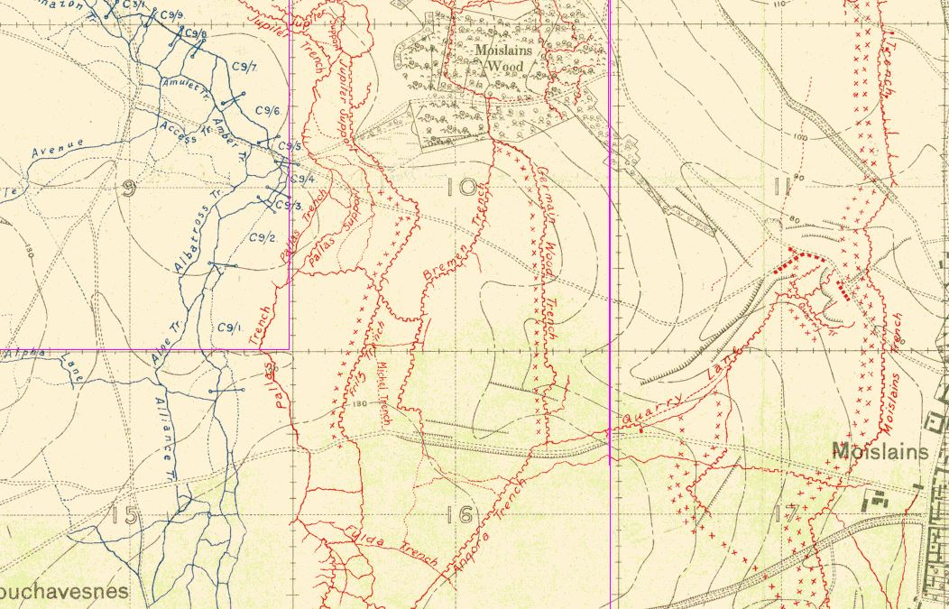 Many men advanced into Bremen Trench before realising their mistake. (click map for enlarged view).