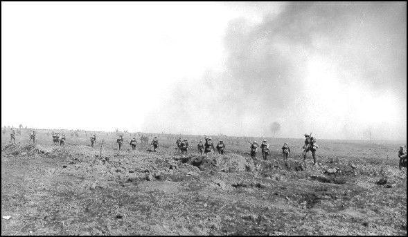 ![]() Men of the Royal Dublin Fusiliers moving forward at Ginchy. |