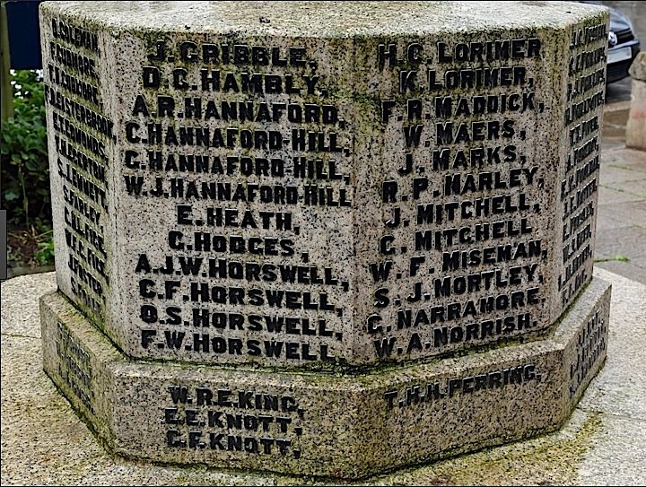 Hhe is also remembered on his hometown memorial in Totnes, Devon.
