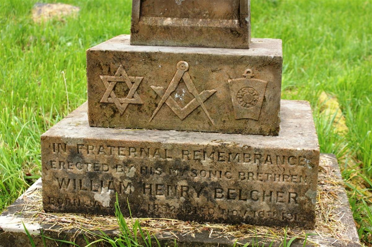 The stone on his father's grave in Speen churchyard was supplied by the local freemasons, of whom William Belcher was evidently a respected member. It is interesting for the masonic symbols decorating it.