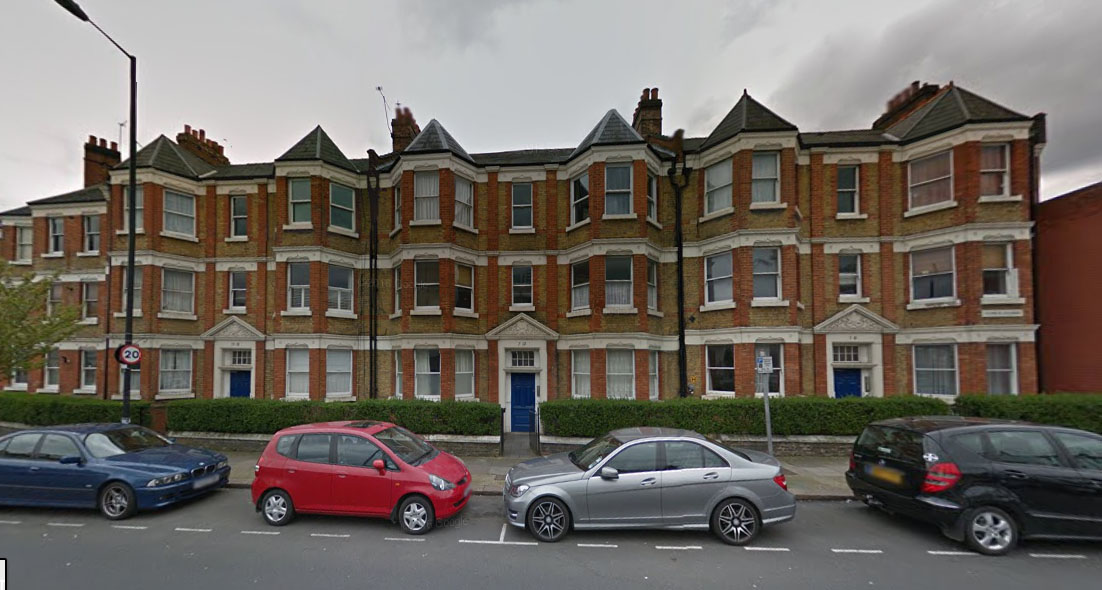 ![]() Salisbury Mansions, Haringay. George and his wife, Mary, lived at No 9. The centre door gives access to flats 7 to 12. (Streetview) |