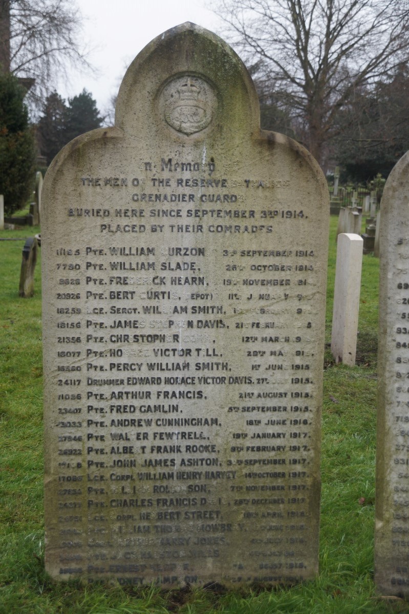 This cemetery also contains a memorial to guardsmen (all regiments) buried in the cemetery, which is the most convenient to the Kensington barracks. The memorial takes the form of a cross surrounded by memorial stones. Stephen is remembered on the stone commemorating men of the 4th Battalion, Grenadier Guards.