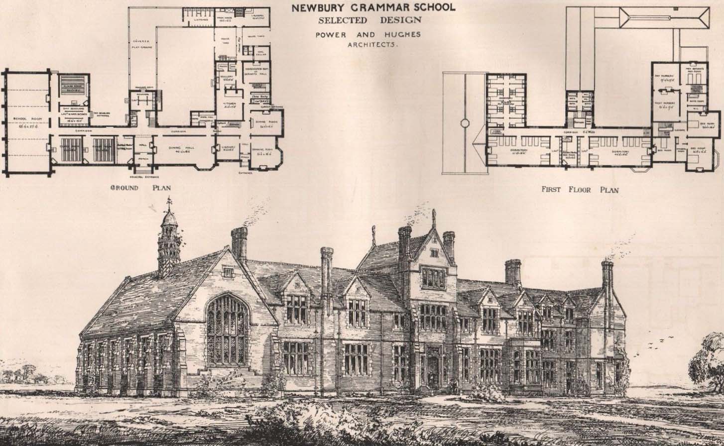 ![]() Newbury Grammar School - design drawing from 1881, merged with Newbury Girls School and is now St Bartholomew's School in a new building |
