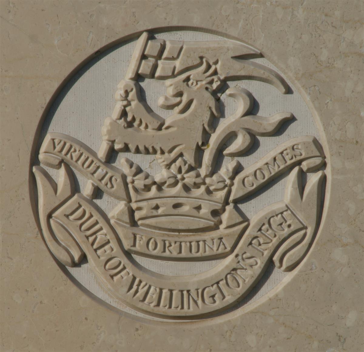 ![]() The regimental badge of the Duke of Wellington's (West Riding) Regiment, as used on CWGC headstones. |