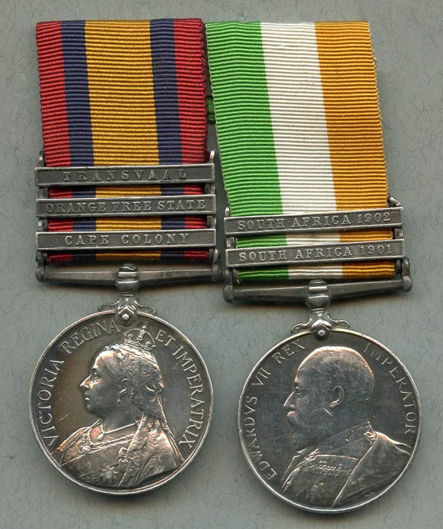 ![]() A South Africa Medal pair with the clasps awarded to John for his service in the Boer War. (www.corbitts.com) |