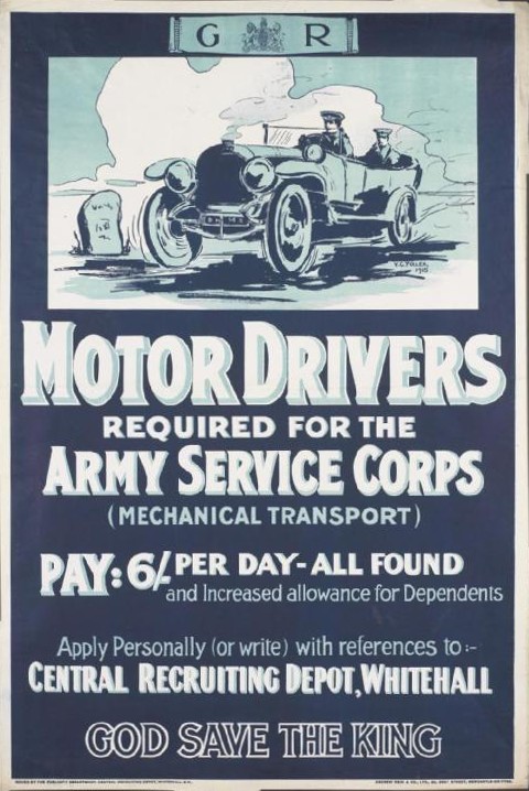 ![]() ASC Recruitment Poster, 1915 - a more attractive image than driving a lorry down muddy tracks. (Wikipedia). |