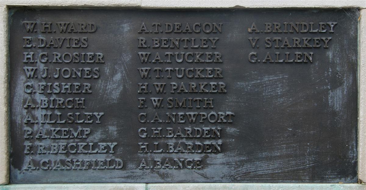 ![]() Arthur Bance's name on Newbury War Memorial (bottom centre) |