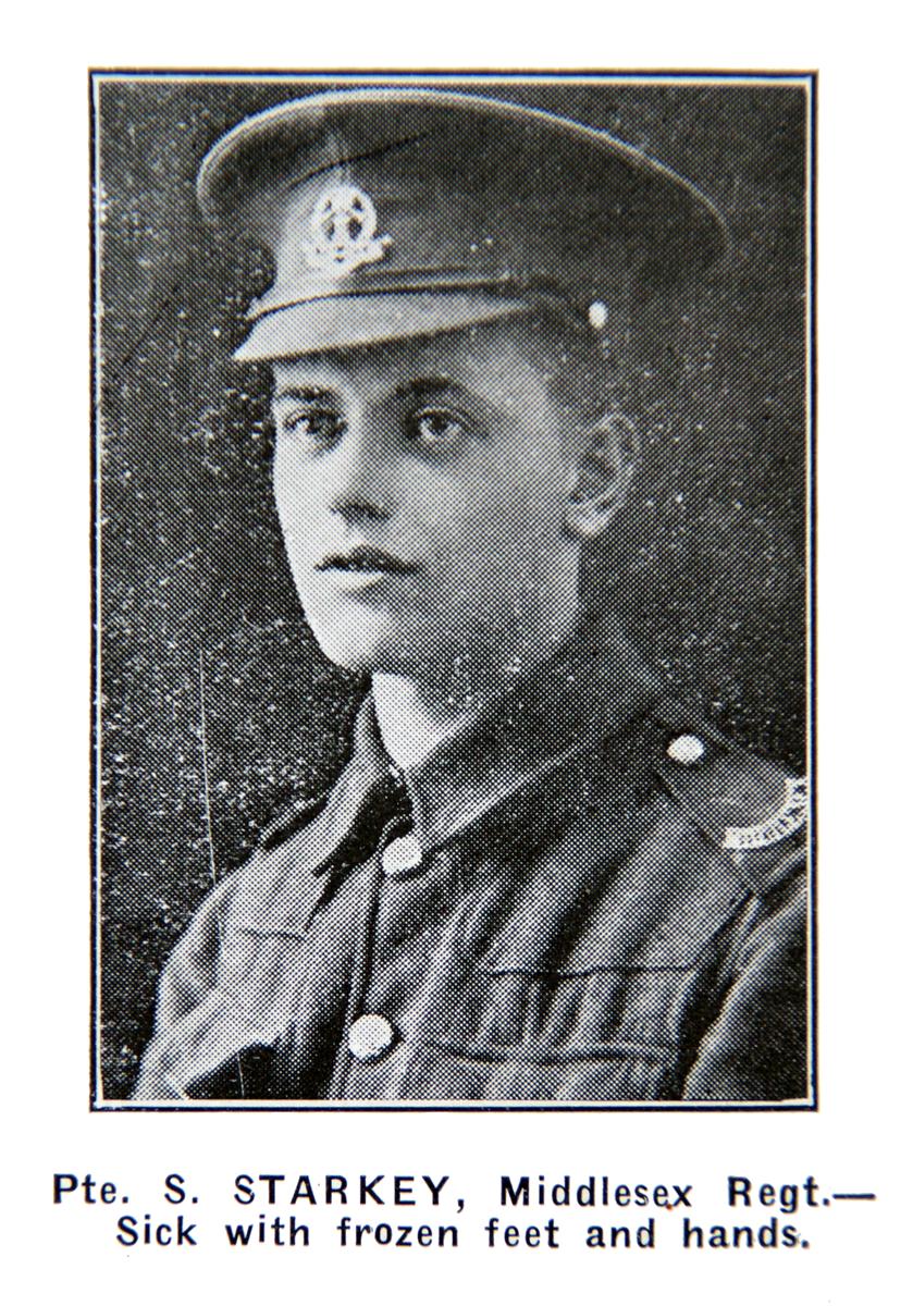 The local publication Berkshire and the War, a special periodical full of photographs of local servicemen, published pictures of Victor (above) and his brother 'S Starkey'. However, he had no brother with the initial 'S'. It seems probably that the picture is incorrectly captioned and that the brother depicted is Victor's younger brother, Clifford - who served with the Middlesex Regiment.