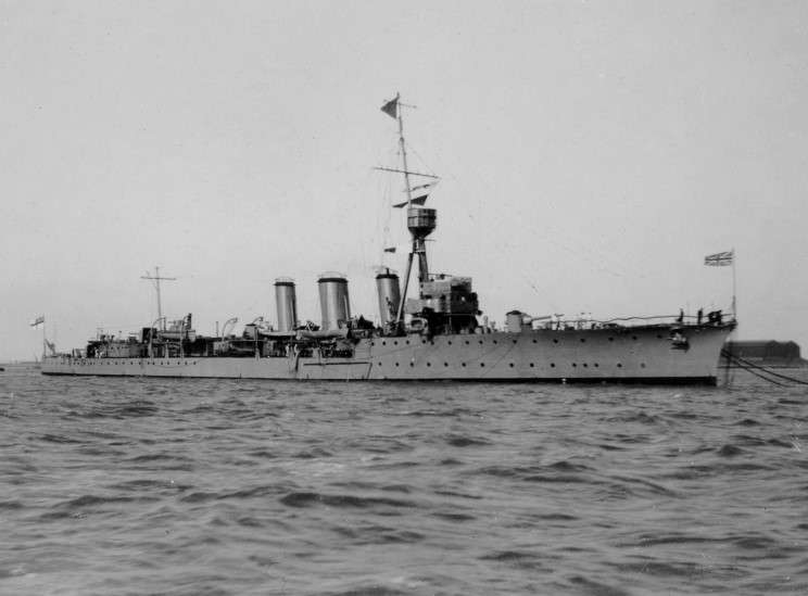 In 1916 a powerful German squadron, far superior in force to Tyrwhiit’s command left the shelter of the Germany and sailed to England and bombarded the ports of Lowestoft and Yarmouth. The German raid had two aims, one was to disrupt the activities of the two ports one of which was a submarine based and the other a centre for minelaying and minesweeping operations. The second aim was to draw out British naval ships and destroy them before the Grand Fleet could arrive from the north. The raid was timed to coincide with the Easter Rising in Ireland following a request for help from Irish nationalists. Tyrwhitt sailed with the Harwich Force to intercept the Germans and sighted elements of the German fleet at 03.50 on 25 April having reported the sighting he turned away hoping to draw the Germans away from the British coast. When he realised they were not following him Tyrwhitt returned, caught up with them and engaged a force of light cruisers and destroyers. These attempted to lure Tyrwhitt towards four battlecruisers who had been bombarding the English ports, when he realised he was hopelessly outgunned Tyrwhitt turned away again but not before HMS Conquest and a destroyer, HMS Laertes, had been hit and seriously damaged.
