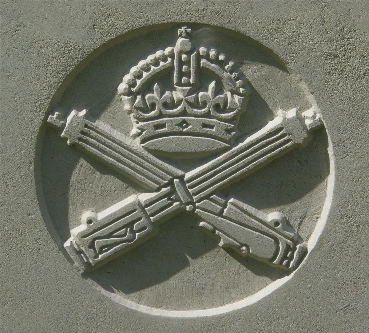 ![]() The regimental badge of the Machine Gun Corps, as used on CWGC headstones. |