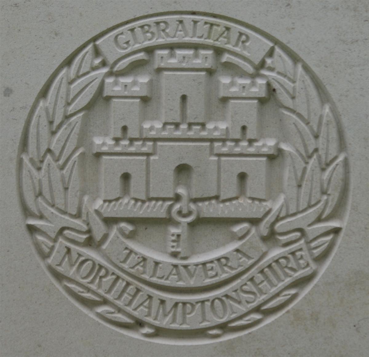 ![]() The regimental badge of the Northamptonshire Regiment, as used on CWGC headstones. |