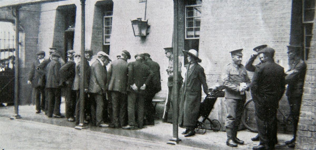 ![]() Reservists reporting for duty at Brock Barracks in Reading - August 1914. |