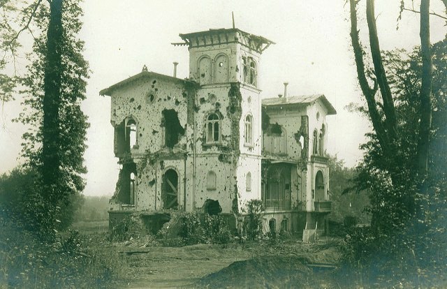 ![]() Polderhoek Chateau in 1915, before it was turned into a pile of rubble in 1917. (photo: Paul Reed - www.greatwarphotos.com) |