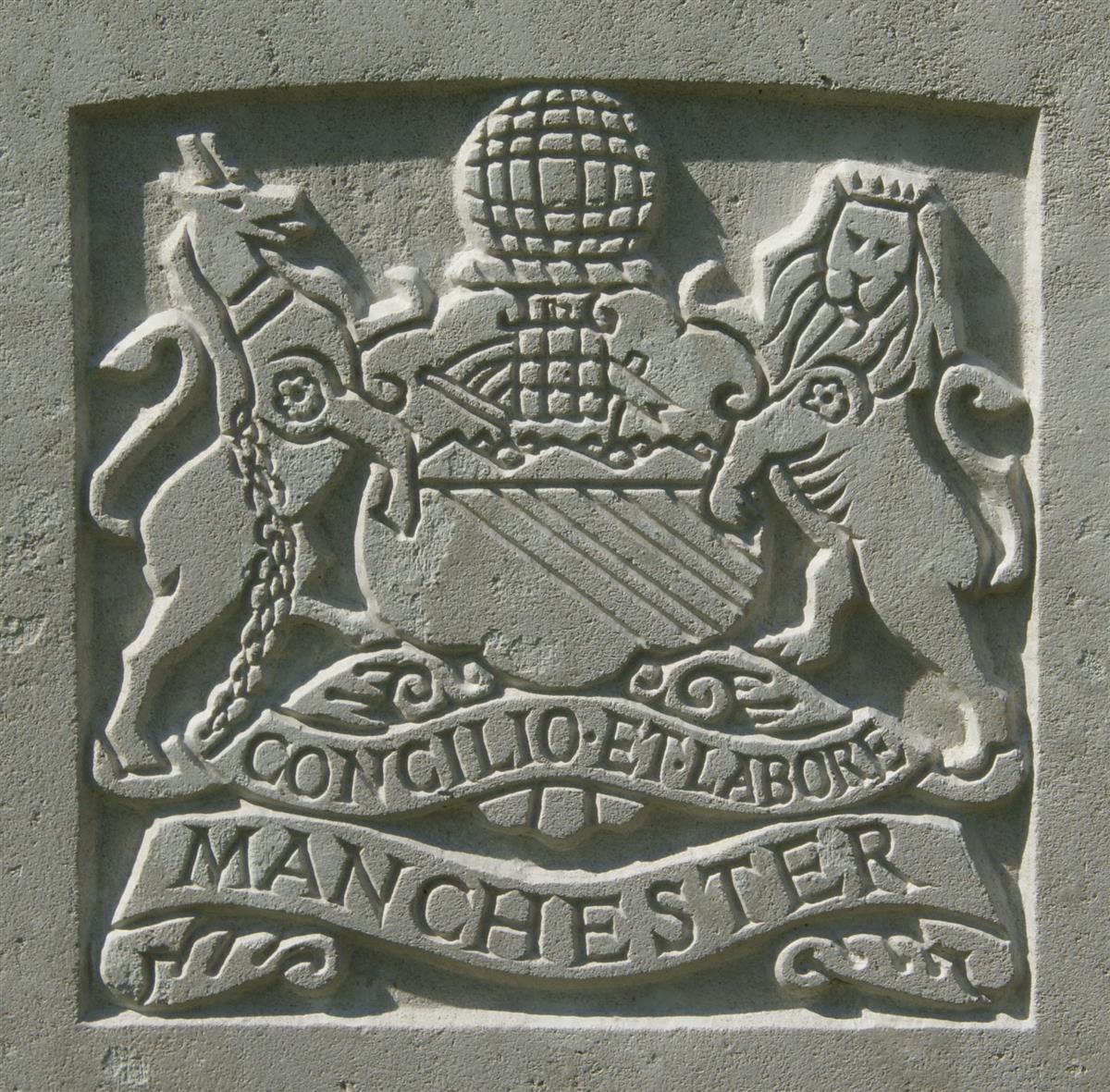![]() The regimental badge of the Manchester Regiment, as used on CWGC headstones. |