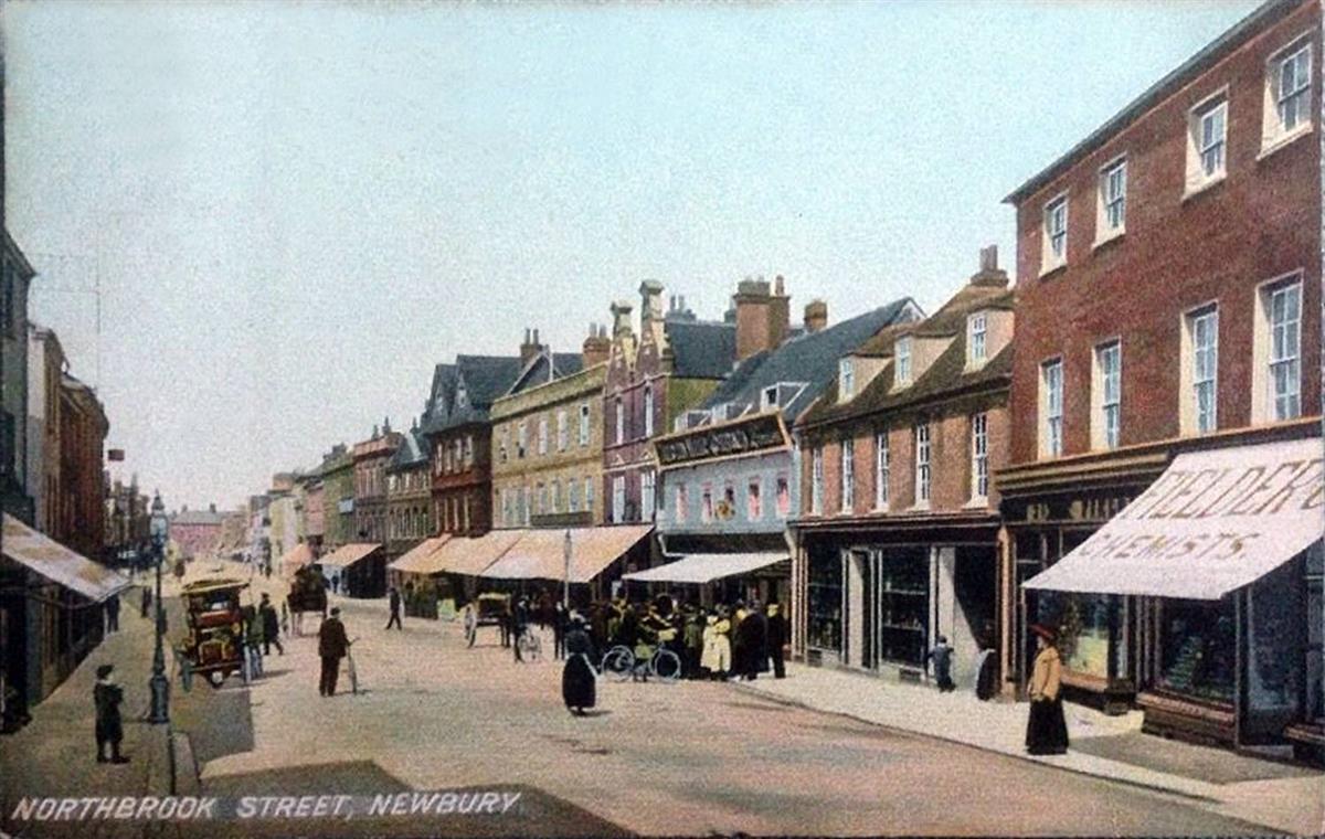 ![]() Northbrook Street, Newbury ca1910, the awning on the right is on the Freemantle's shop (Fielder's) and home. |