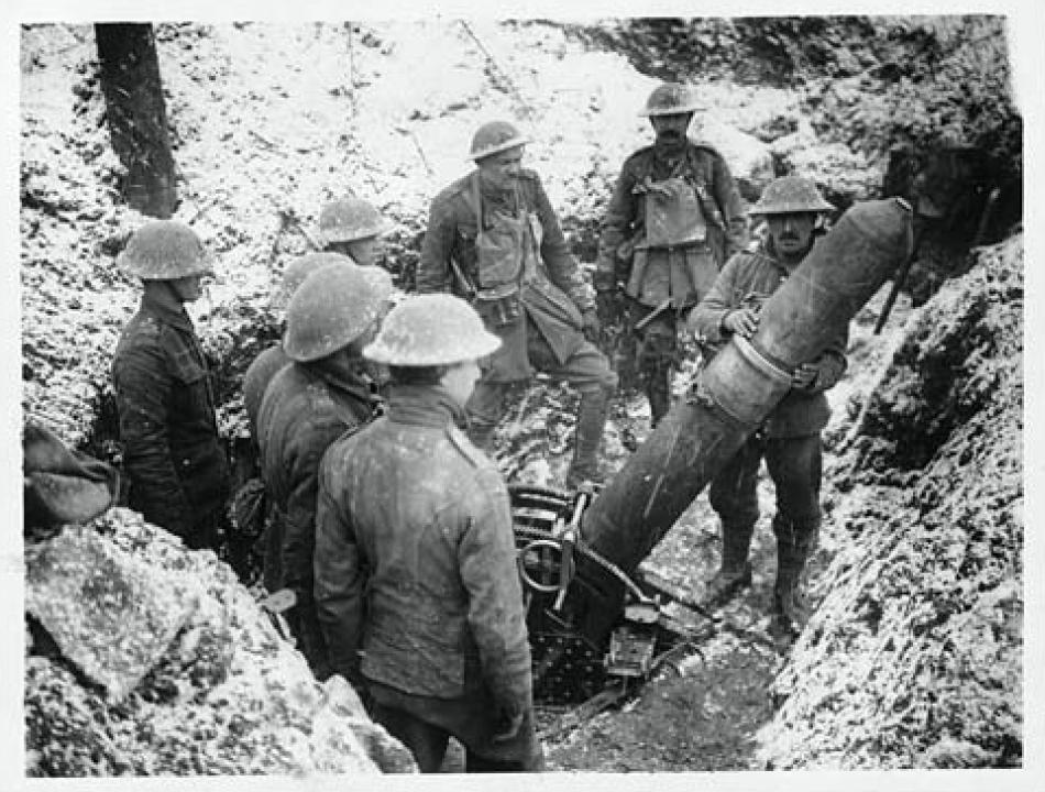 ![]() Loading a heavy trench mortar. |