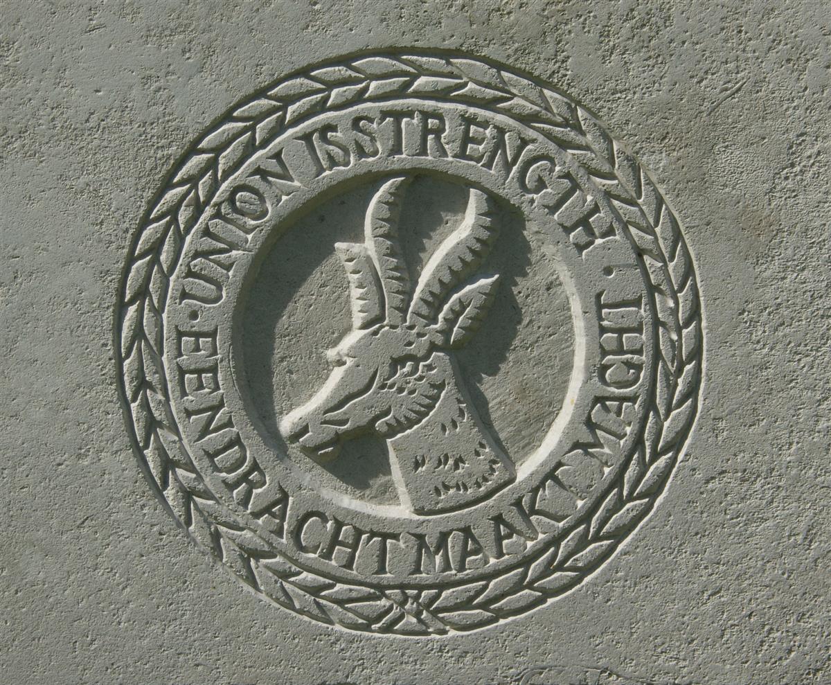 ![]() The South African Infantry cap badge, as used on CWGC headstones. |