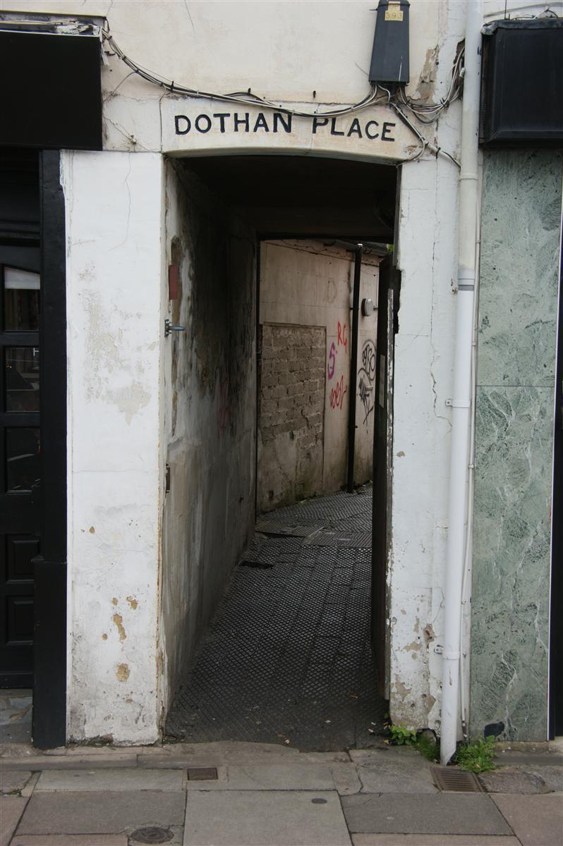 ![]() The ginnel in Cheap Street leading to the yard known as Dothan Place. The cottages behind are long gone. |